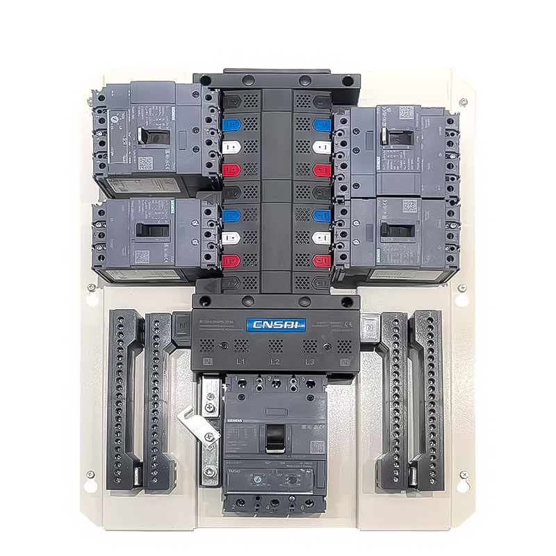 CNSDI's CDi420-4PN Busbar Pan Assembly is a high-performance electrical distribution solution. This isolation Busbar Pan Assembly provides a quick and easy method to connect MCCBs.This range of 4-phase pan assemblies is designed to suit applications where switchingandprotection of the neutral is deemed unnecessary, Each pan assembly is fuly insulated incorporating Mounting plate, incoming and outgoing busbar assembly.The Ie rated operational current 250A and Ue rated operational voltage of 415V at 50 Hz This Pan Assembly can have both top or bottom feeding This Pan Assembly is compatibility with incomer 4PN and ootgoer 4P devices The number of outgoing ways in Busbar Pan Assembly is 16 with pitch of 25mm. It is suitable for standard, commercial and industrial applications. The Ui rated insulation voltage is 500VAC with Uimp rated impulse voltage of 6kV.This product complies with IEC/EN 61439-3 standard.