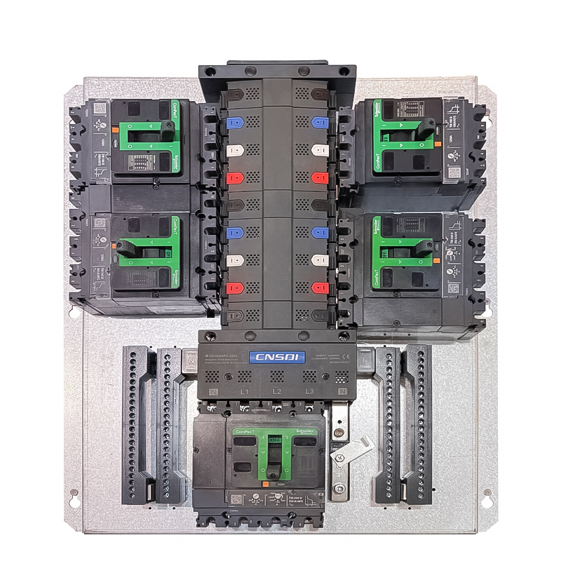 CNSDI's CDi420-4PN Busbar Pan Assembly is a high-performance electrical distribution solution. This isolation Busbar Pan Assembly provides a quick and easy method to connect MCCBs.This range of 4-phase pan assemblies is designed to suit applications where switchingandprotection of the neutral is deemed unnecessary, Each pan assembly is fuly insulated incorporating Mounting plate, incoming and outgoing busbar assembly.The Ie rated operational current 250A and Ue rated operational voltage of 415V at 50 Hz This Pan Assembly can have both top or bottom feeding This Pan Assembly is compatibility with incomer 4PN and ootgoer 4P devices The number of outgoing ways in Busbar Pan Assembly is 16 with pitch of 35mm. It is suitable for standard, commercial and industrial applications. The Ui rated insulation voltage is 500VAC with Uimp rated impulse voltage of 6kV.This product complies with IEC/EN 61439-3 standard.