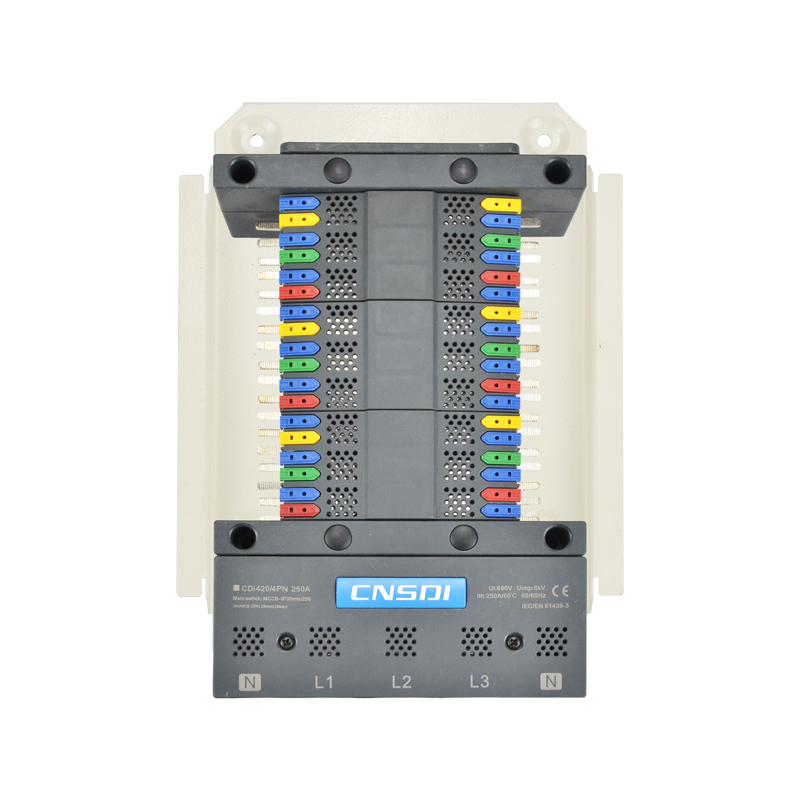 CNSDI's CDi420-4PN Pan Assembly Busbar is a high-performance electrical distribution solution. This isolation Busbar chassis provides a quick and easy method to connect MCBs.The Ie rated operational current 250A and Ue rated operational voltage of 415V at 50 Hz This Busbar can have both top or bottom feeding This Chassis is compatibility with incomer 4PN and ootgoer MCB-idpn devices The number of outgoing ways in Busbar is MCB-18mm. It is suitable for standard, commercial and industrial applications. The Ui rated insulation voltage is 500VAC with Uimp rated impulse voltage of 6kV.This product complies with IEC/EN 61439-3 standard.