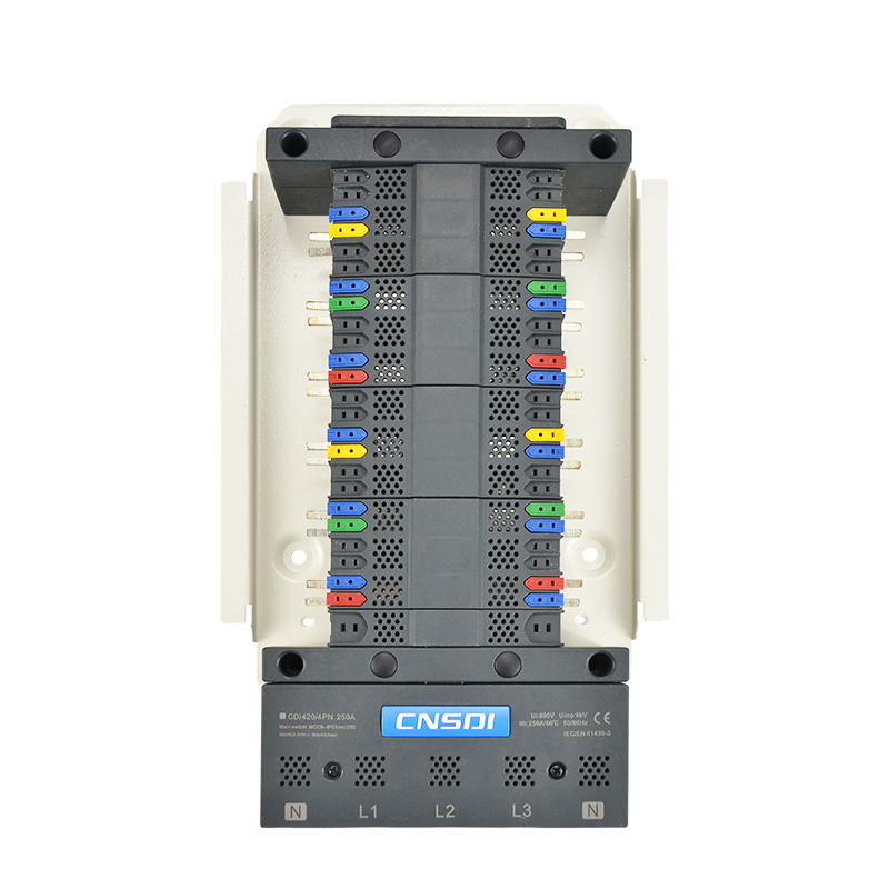 CNSDI's CDi420-4PN Pan Assembly Busbar is a high-performance electrical distribution solution. This isolation Busbar chassis provides a quick and easy method to connect MCBs.The Ie rated operational current 250A and Ue rated operational voltage of 415V at 50 Hz This Busbar can have both top or bottom feeding This Busbar is compatibility with incomer 4PN and ootgoer MCB-idpnL devices The number of outgoing ways in Busbar is MCB-36mm. It is suitable for standard, commercial and industrial applications. The Ui rated insulation voltage is 500VAC with Uimp rated impulse voltage of 6kV.This product complies with IEC/EN 61439-3 standard.